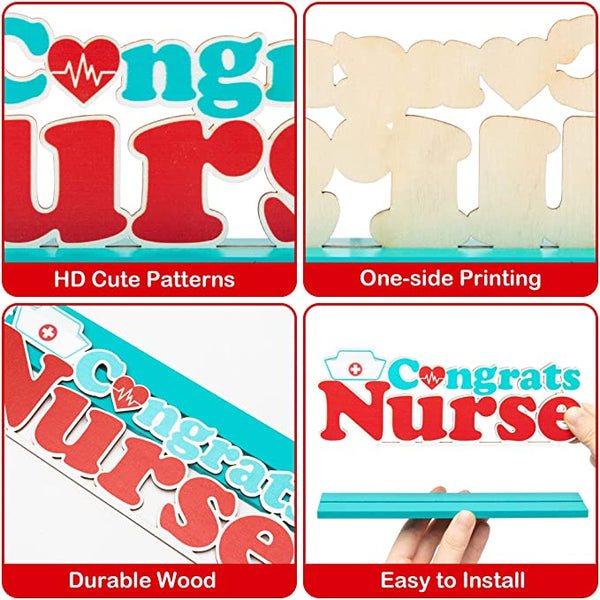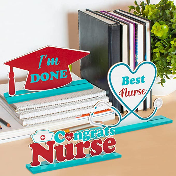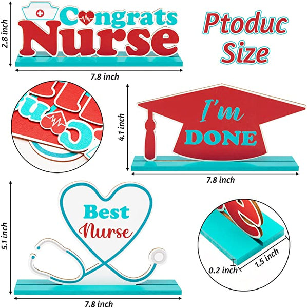 Haooryx 3PCS Nurse Graduation Wooden Centerpiece Grad Party Decorations