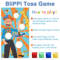 - PACKAGE CONTENT: 1 fabric Blipi toss game banner, 4 pieces bean bags and 1 piece ribbon for hanging. Funny Blipi themed party game set for both children and adults.